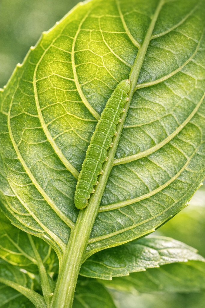 Si le feuillage est dévoré mais que tout est "propre" (pas de bave), jetez un œil sous les feuilles. Les chenilles défoliatrices, souvent vertes et parfaitement camouflées, peuvent anéantir un plant en deux nuits. Enfin, si vous remarquez de petits insectes aux reflets métalliques (bleu, vert ou rayé), vous faites face à la chrysomèle, un petit coléoptère qui prend littéralement votre plante pour un buffet à volonté.